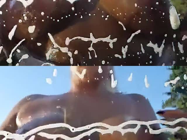 Outdoors topless washing sports with sexy model during photoshoot voyeur