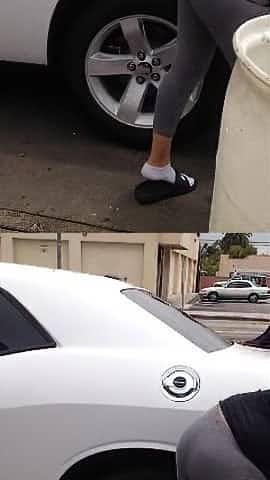 Car wash pink hair showing ass pt3