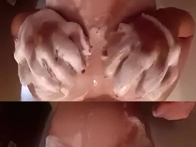 Shower handjob. Girl helped the guy wash his dick with soap.