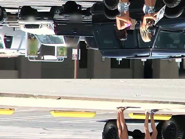 Curvy sex queen MILF flashing big ass and tits at a car wash