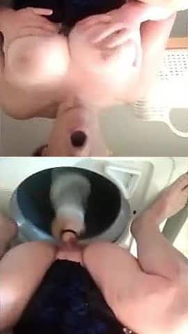 Nasty girl washing her sexy ass with cum