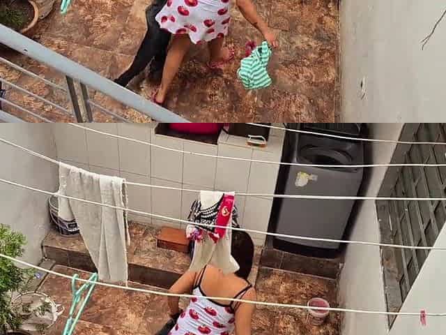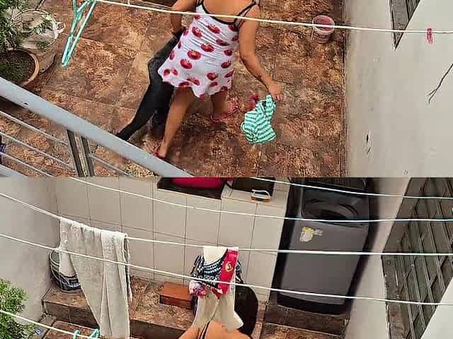 Young Stepbrother Wife Washing Clothes and Review Her Ass and Vagina