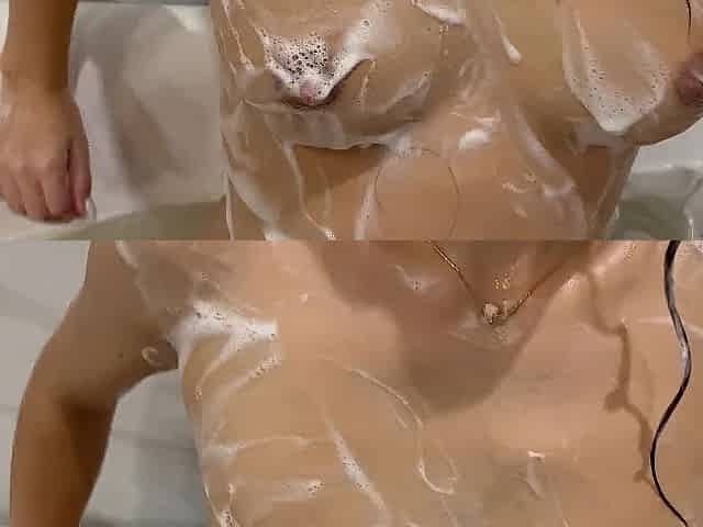 I Wash My Big Tits In The Bathtub With Foam