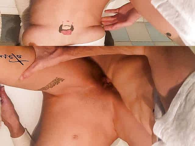 Washing his balls, cock and ass in the shower
