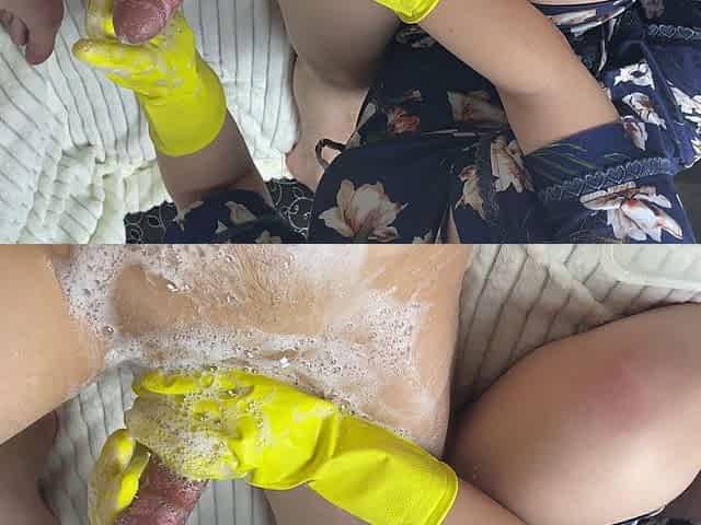 Hot housewife washes my cock while cleaning