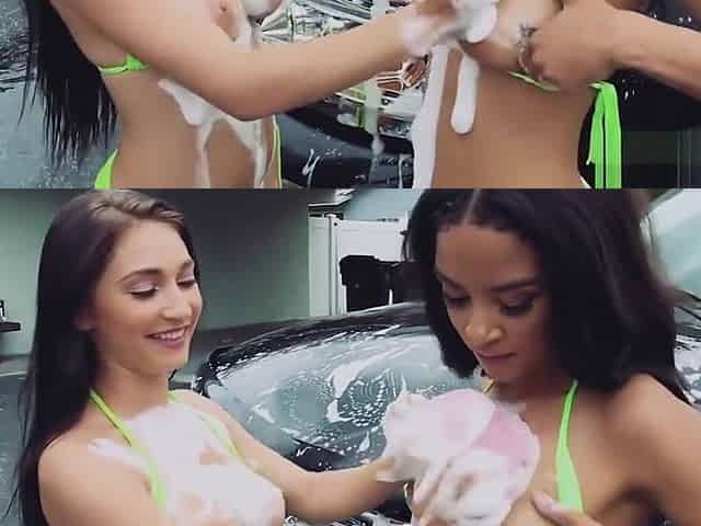 Huge natural tits babes washing car