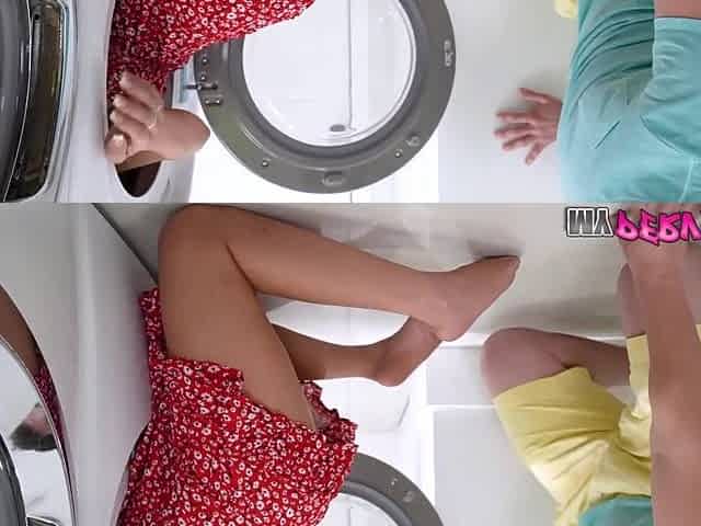Stepsister got stuck in the washing machine. This is a great opportunity to bang her in anal