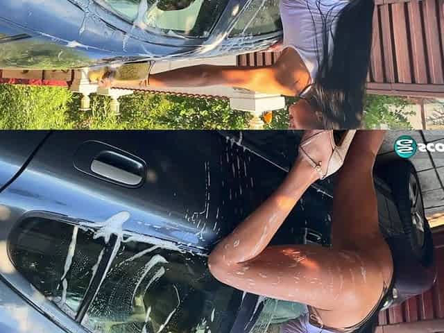 Blondes In Bikinis Get Too Horny While Rubbing Their Big Tits During A Car Wash