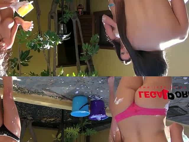 Two Hot Brunette Naked Carwash Showing Big Medium Tits And Perfect Ass