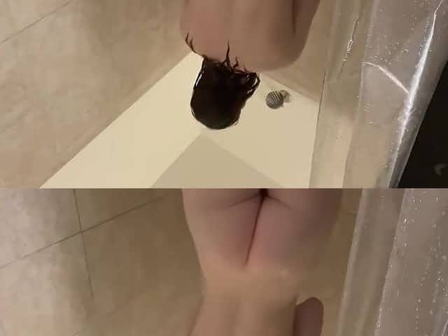 Christine Krug. washing the bath, spraying her ass and cunt.