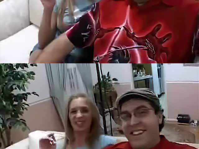 Sexy blond with precious booty receives her cunt licked from behind as her hubby watches