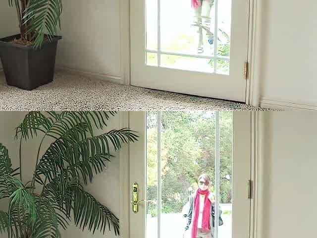 Home camera underneath the table watches a chubby wife.