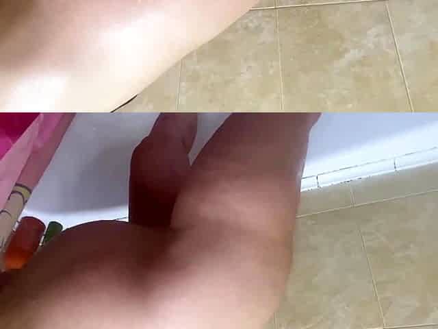 I'm watching a pregnant stepmom wash her big milky tits in the bathroom