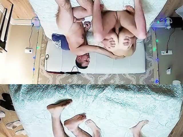 Big breasted blonde gets fucked hard in both holes and her man watches