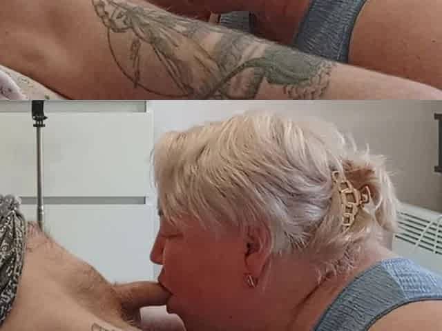 Wife Watches Mother-in-law Doing Deep Blowjob and Swallowing Cum