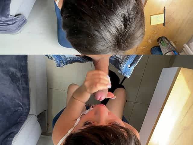 I suck my best friend's dildo while my girlfriend watches