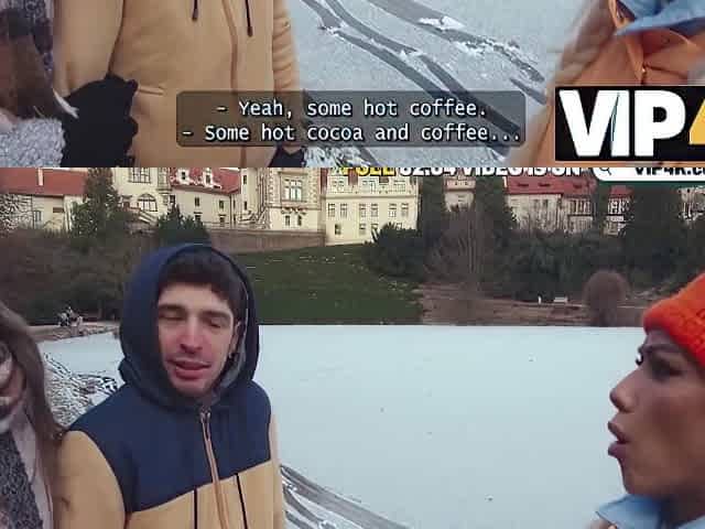 VIP4K. Czech slut wife is showing off her big boobs in the bank while her hubby watching