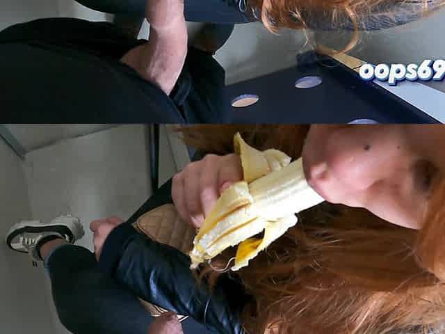 Voyeur watches redhead having sex on the terrace