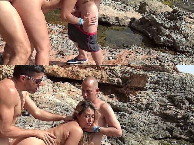 Trio on a beach in Mallorca leaves me full of jizz