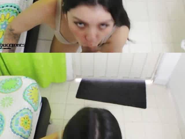 After watching my stepsister I fuck her pussy very richly in the shower - porn in Spanish