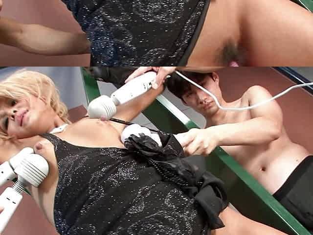 "Horny Japanese Fingering Slut Solo and guy watching"