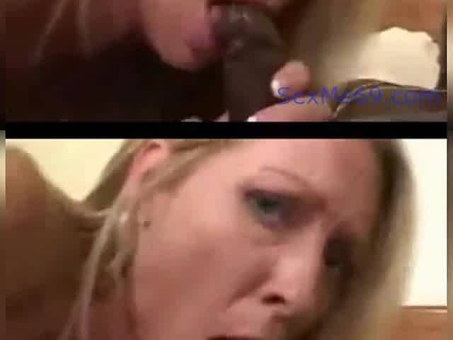 "Watch blonde MILF get on her knees in bar and suck a black cock"