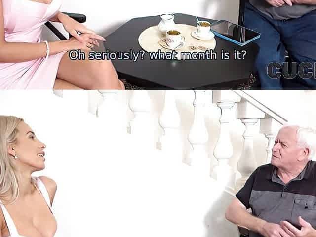 Kinky husband watches as stud pounds naughty wife Tina Kay while she relaxes on cuckold's lap