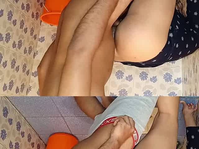 Devar, secretly watching peeing, called by the Bhabhi to fuck pussy in the bathroom