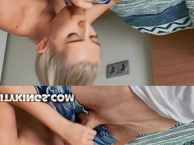 Blonde girlfriend blowjobs while neighbor is watching