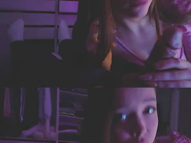 Cherry Petite giving a blowjob in POV video while her friend watches