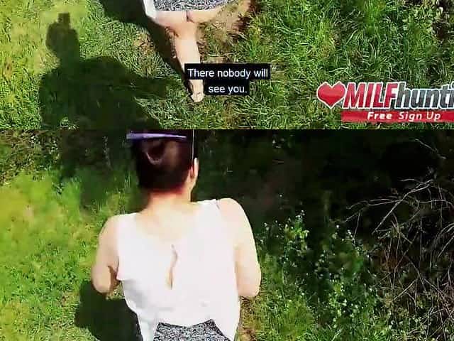 Breasty brunette hair Proscilla is riding Hunter's hard dick in the public park like nobody's watching