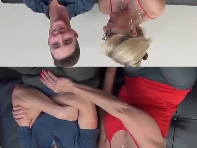 Deepthroat on boyfriend's big dick before sharing it with her mom