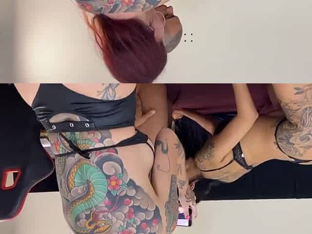Skinny Tattooed Girl Gets Hard Fucked, Deepthroated, And Creampied Right In Front Of Her Best Friend
