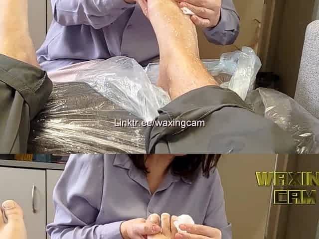 Feet and waxing with a machine, watch the bushy vagina of the owner of those feet.