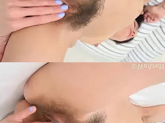 Sunshine strips on bed and masturbates loudly - WeAreHairy