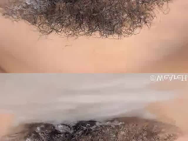 Mila T has her hair in a ponytail in the shower - WeAreHairy