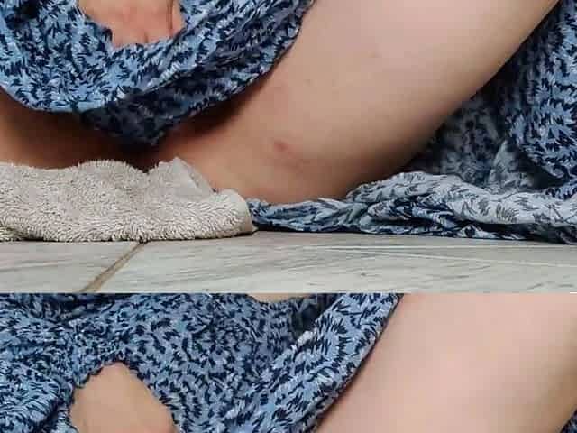 Pregnant teen cums hard in a long dress at home