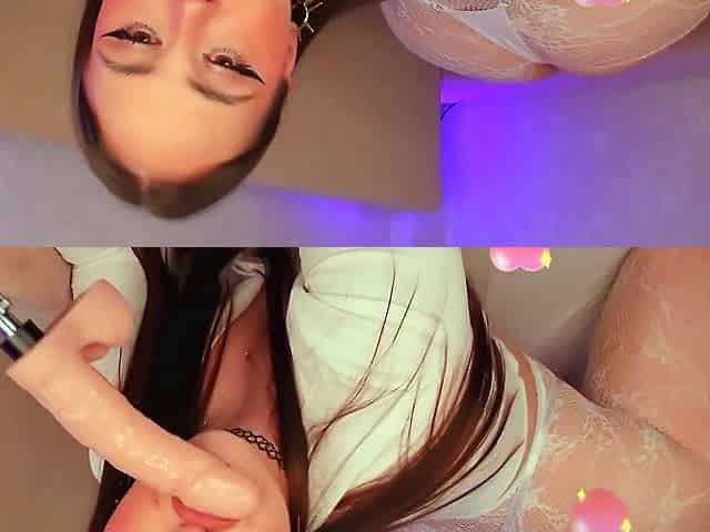 Busty Amateur Babe Squirts on Webcam with Dildo