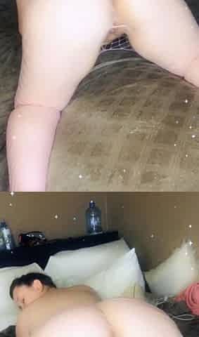 Warm sperm creampie in my tight ass by my husband.