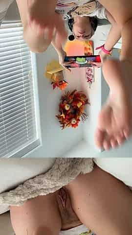 Blonde Russian MILF's Footjob and Toy Solo on Webcam