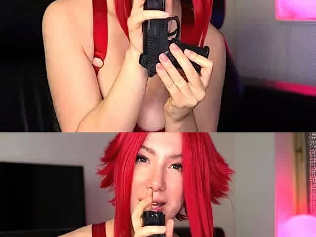 Redhead Babe Naked on Couch with Pink Vibrator Webcam