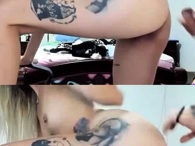 Tattooed vixen indulges in solo play with anal toys on webcam