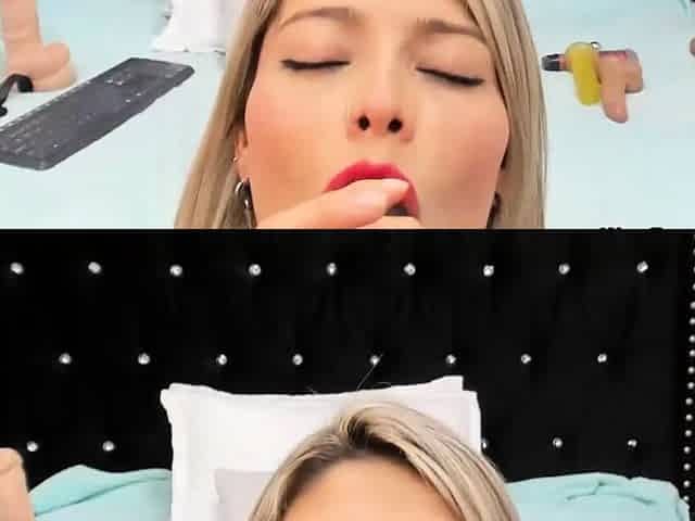 Blonde Babe Sucking Dildo While Rubbing Her Clit