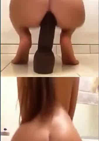 Huge Bbc Dildo Anal Riding In The Bathroom