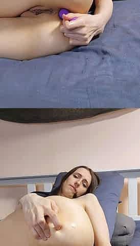 Naughty Petite Babe enjoys a dildo inside her