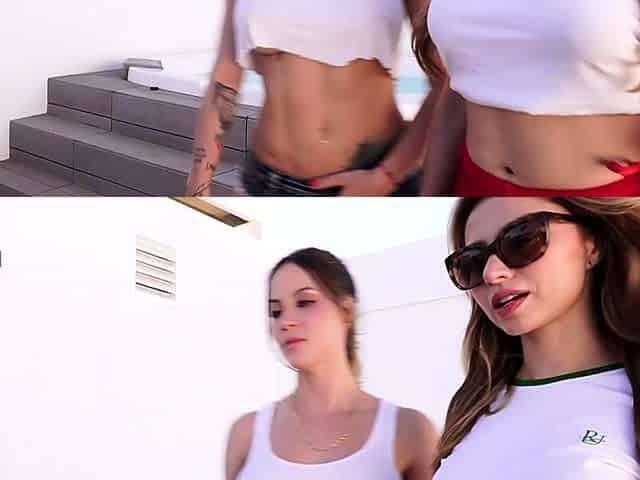 Little Lupe with blond angel undress off and licking melons. They showing her cameltoe and licking with