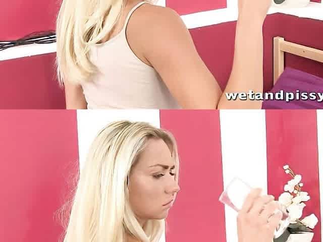 Wet and playful hottie Puppy is having fun with her urine and pussy