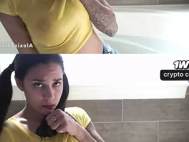 Alexis Zara se diverte em um banho com strip-tease de jeans molhados e foda subaquática na banheira.
