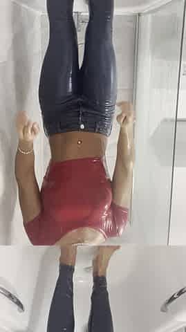 shows current snatch and cums in pants
