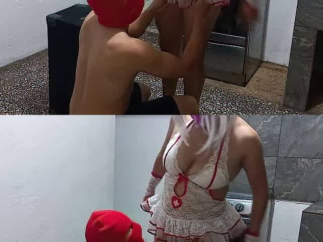 Masked Ghostface GF Slides Into Dad’s Couch & Milks Each Drop Onto Her Thirsty Bush